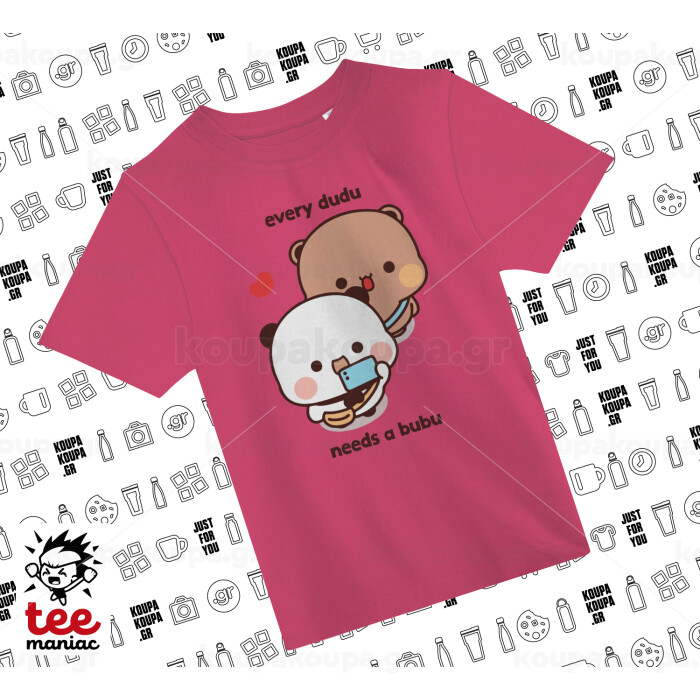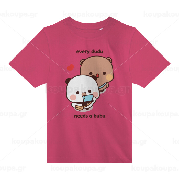 Every Dudu needs a bubu, ΡΟΖ παιδικό T-Shirt από 100% βαμβάκι, για κάθε μέρα. Vegan & OEKO-TEX πιστοποιημένο.
