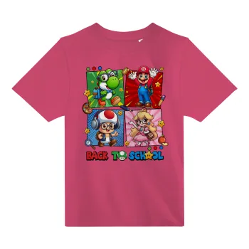 Back to the School Mario & Friends, ΡΟΖ παιδικό T-Shirt από 100% βαμβάκι, για κάθε μέρα. Vegan & OEKO-TEX πιστοποιημένο.