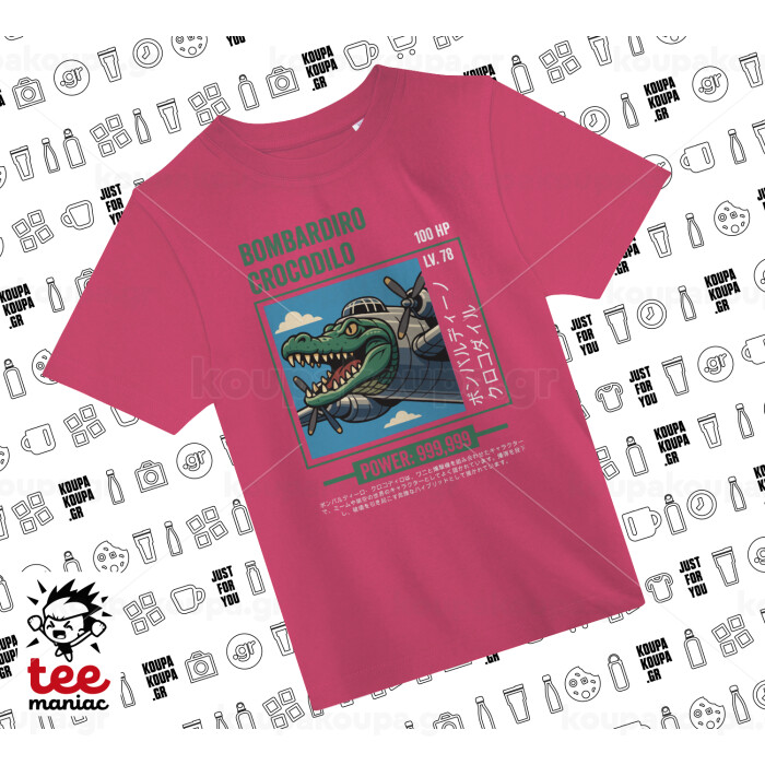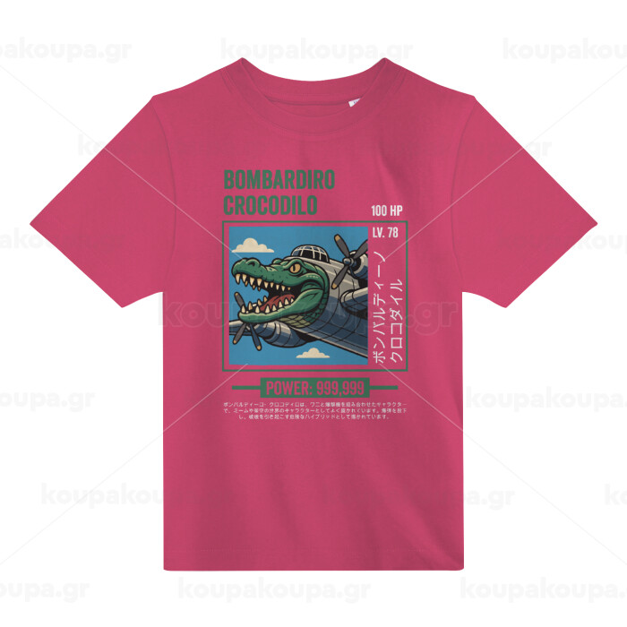 Bombardiro Crocodilo, ΡΟΖ παιδικό T-Shirt από 100% βαμβάκι, για κάθε μέρα. Vegan & OEKO-TEX πιστοποιημένο.