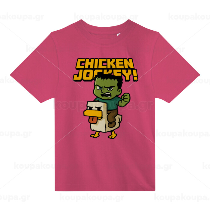 Chicken Jockey, ΡΟΖ παιδικό T-Shirt από 100% βαμβάκι, για κάθε μέρα. Vegan & OEKO-TEX πιστοποιημένο.