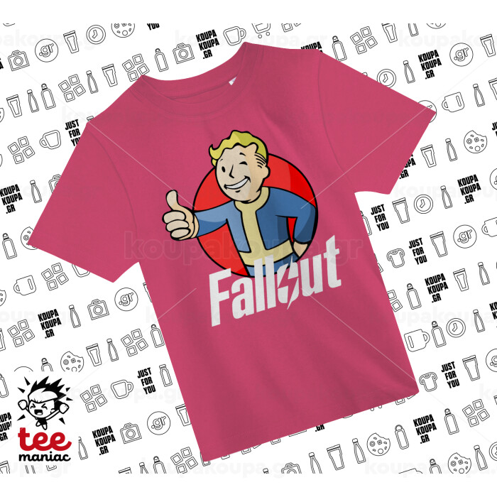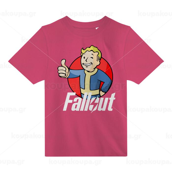 Fallout Vault Boy, ΡΟΖ παιδικό T-Shirt από 100% βαμβάκι, για κάθε μέρα. Vegan & OEKO-TEX πιστοποιημένο.