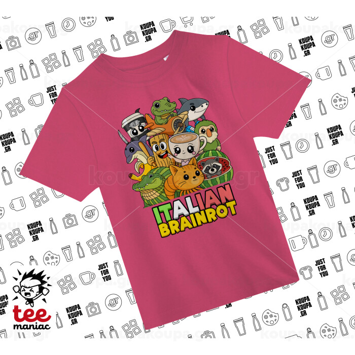 Italian Brainrot friends, ΡΟΖ παιδικό T-Shirt από 100% βαμβάκι, για κάθε μέρα. Vegan & OEKO-TEX πιστοποιημένο.