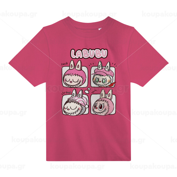 Labubu pink, ΡΟΖ παιδικό T-Shirt από 100% βαμβάκι, για κάθε μέρα. Vegan & OEKO-TEX πιστοποιημένο.