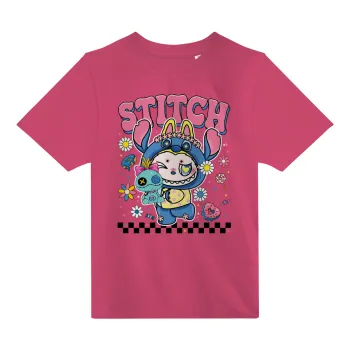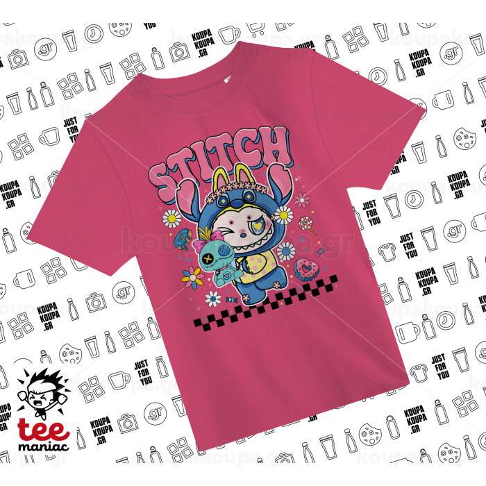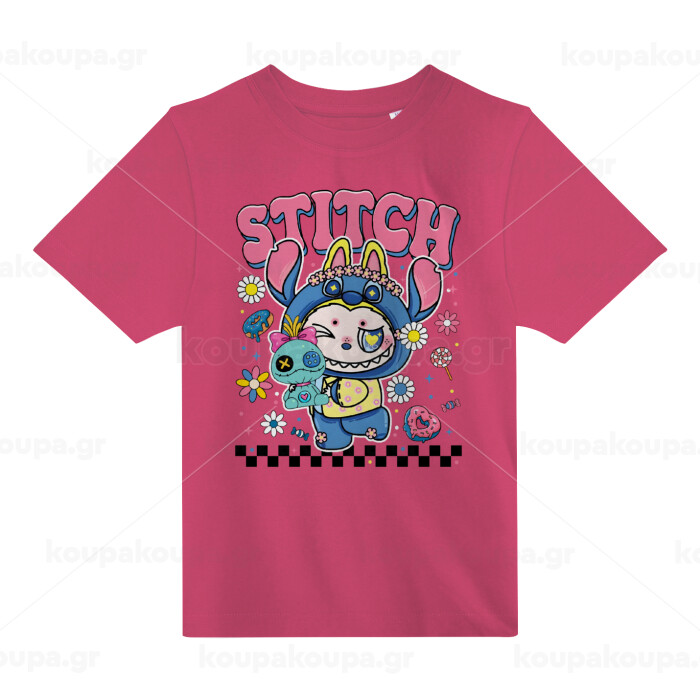 Labubu Stitch, ΡΟΖ παιδικό T-Shirt από 100% βαμβάκι, για κάθε μέρα. Vegan & OEKO-TEX πιστοποιημένο.