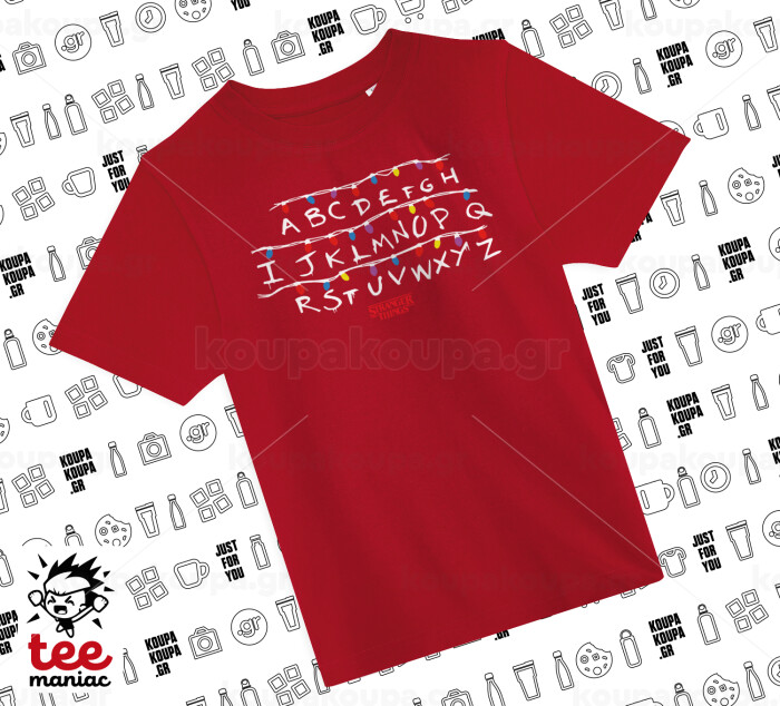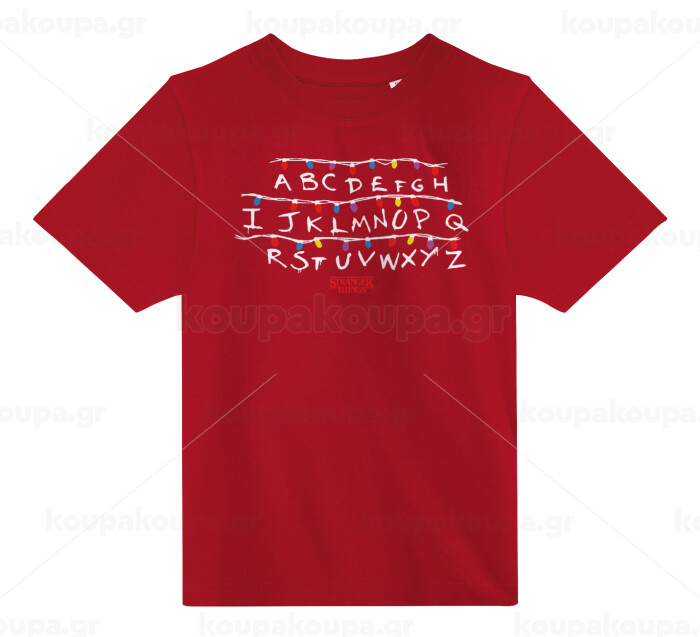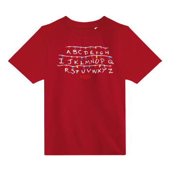 Stranger Things ABC, Άνετο παιδικό T-Shirt ΚΟΚΚΙΝΟ από 100% βαμβάκι, για κάθε μέρα. Vegan & OEKO-TEX πιστοποιημένο.