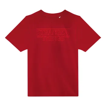 Stranger Things Logo, Άνετο παιδικό T-Shirt ΚΟΚΚΙΝΟ από 100% βαμβάκι, για κάθε μέρα. Vegan & OEKO-TEX πιστοποιημένο.