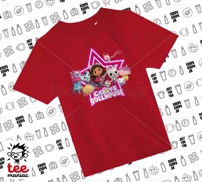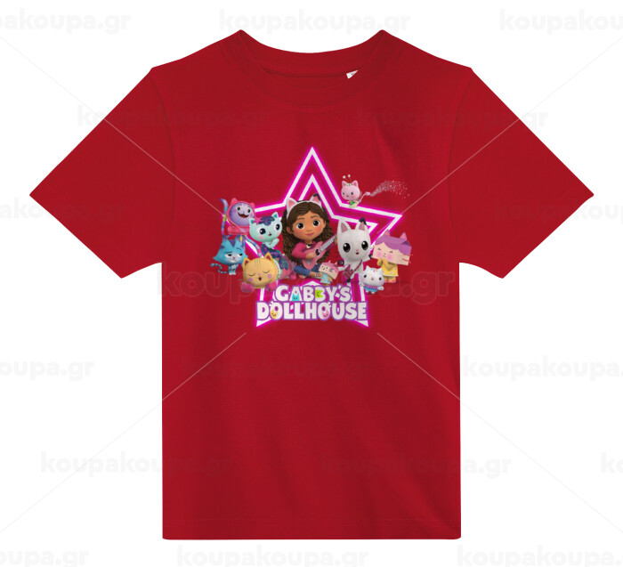 Gabby Dollhouse (ΤΟ ΚΟΥΚΛΟΣΠΙΤΟ ΤΗΣ ΓΚΑΜΠΙ), Άνετο παιδικό T-Shirt ΚΟΚΚΙΝΟ από 100% βαμβάκι, για κάθε μέρα. Vegan & OEKO-TEX πιστοποιημένο.