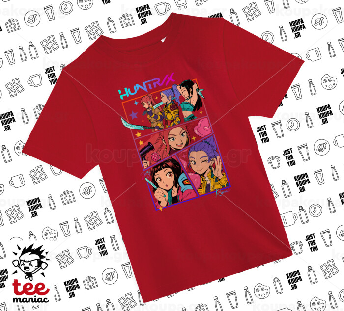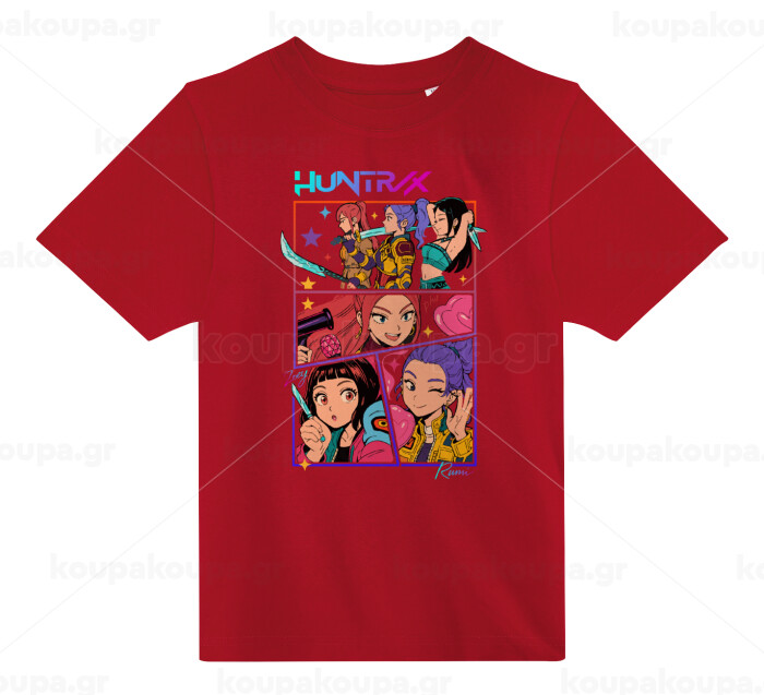 Huntrix Kpop Girls, Άνετο παιδικό T-Shirt ΚΟΚΚΙΝΟ από 100% βαμβάκι, για κάθε μέρα. Vegan & OEKO-TEX πιστοποιημένο.