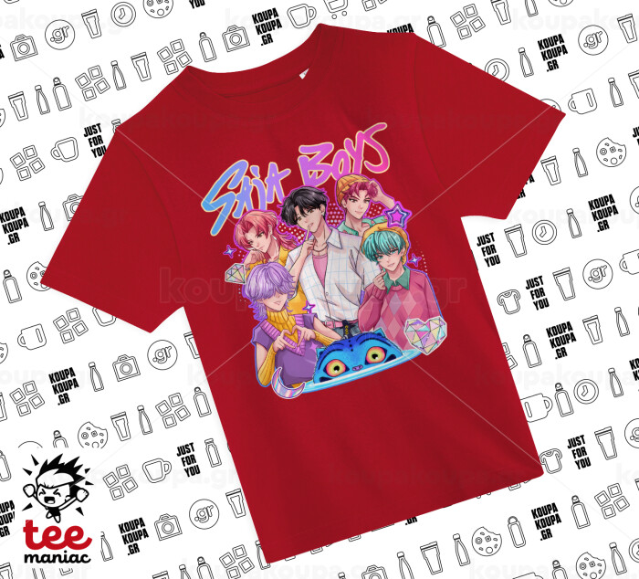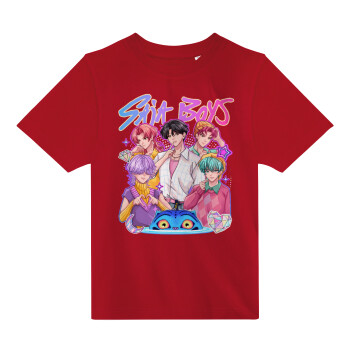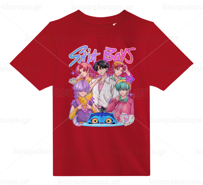 Huntrix Saja Boys, Άνετο παιδικό T-Shirt ΚΟΚΚΙΝΟ από 100% βαμβάκι, για κάθε μέρα. Vegan & OEKO-TEX πιστοποιημένο.