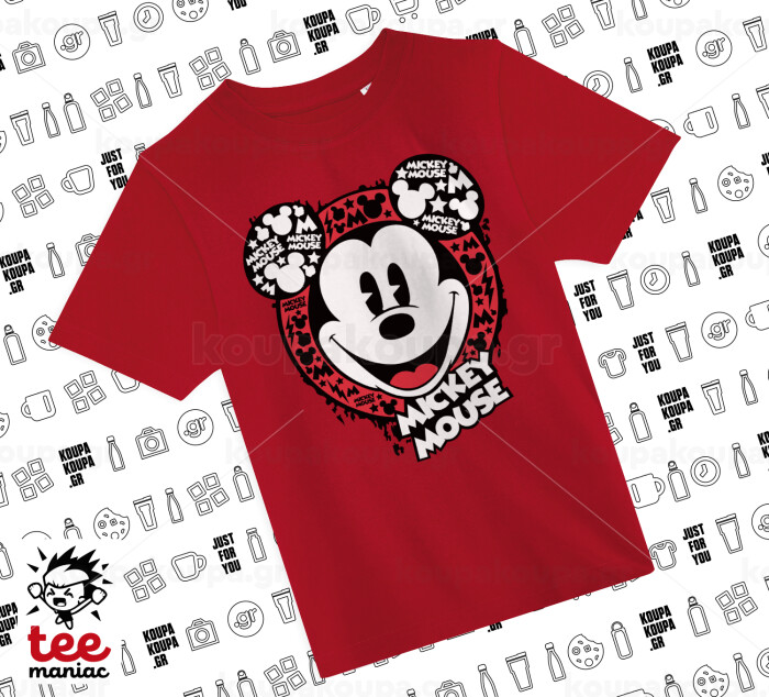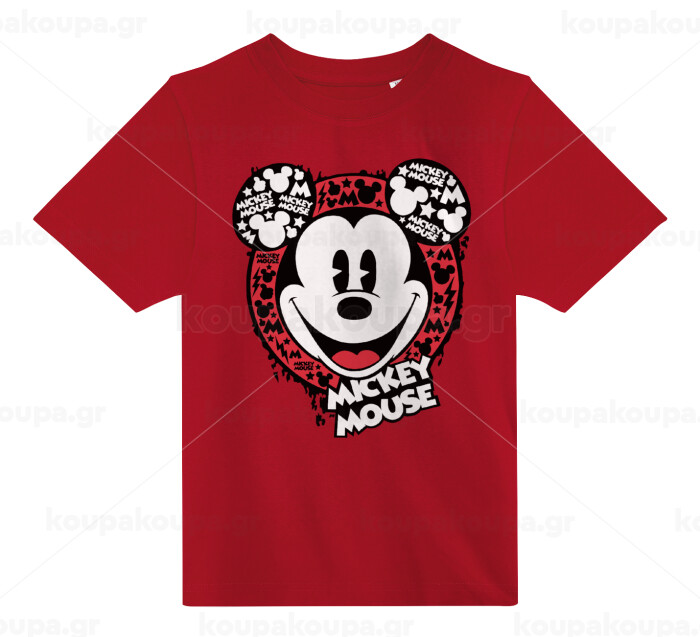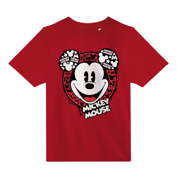 Mickey Mouse, Άνετο παιδικό T-Shirt ΚΟΚΚΙΝΟ από 100% βαμβάκι, για κάθε μέρα. Vegan & OEKO-TEX πιστοποιημένο.