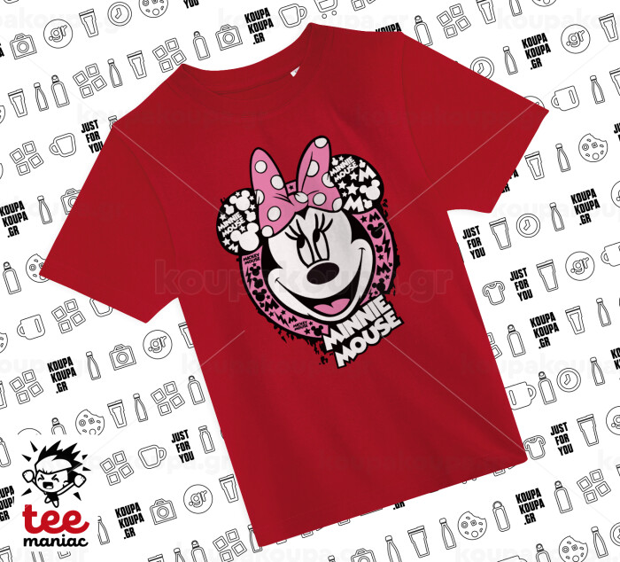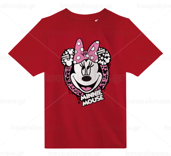 Minnie mouse, Άνετο παιδικό T-Shirt ΚΟΚΚΙΝΟ από 100% βαμβάκι, για κάθε μέρα. Vegan & OEKO-TEX πιστοποιημένο.