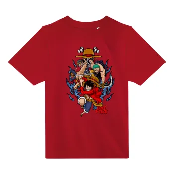 One Piece, Άνετο παιδικό T-Shirt ΚΟΚΚΙΝΟ από 100% βαμβάκι, για κάθε μέρα. Vegan & OEKO-TEX πιστοποιημένο.