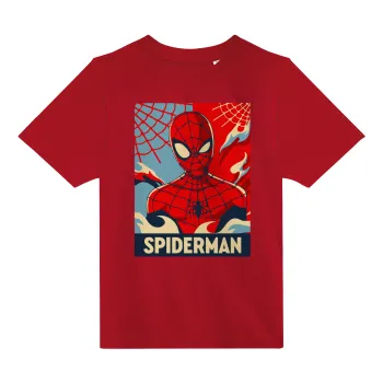 Spiderman kid, Άνετο παιδικό T-Shirt ΚΟΚΚΙΝΟ από 100% βαμβάκι, για κάθε μέρα. Vegan & OEKO-TEX πιστοποιημένο.