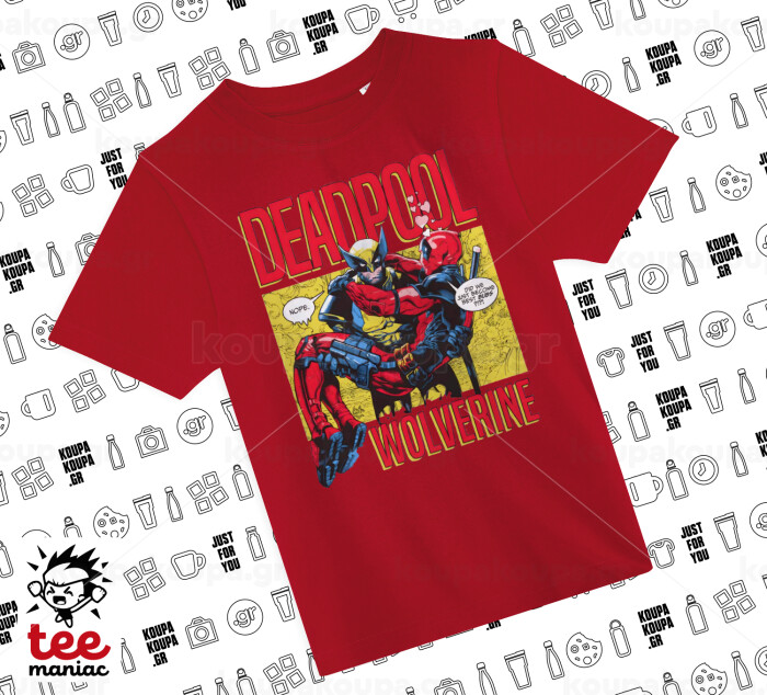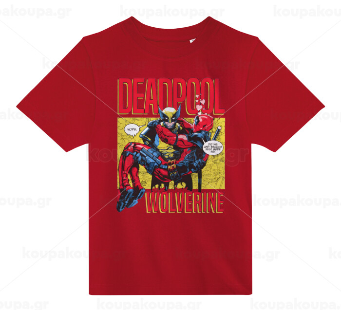Superhero Deadpool Wolverine, Άνετο παιδικό T-Shirt ΚΟΚΚΙΝΟ από 100% βαμβάκι, για κάθε μέρα. Vegan & OEKO-TEX πιστοποιημένο.