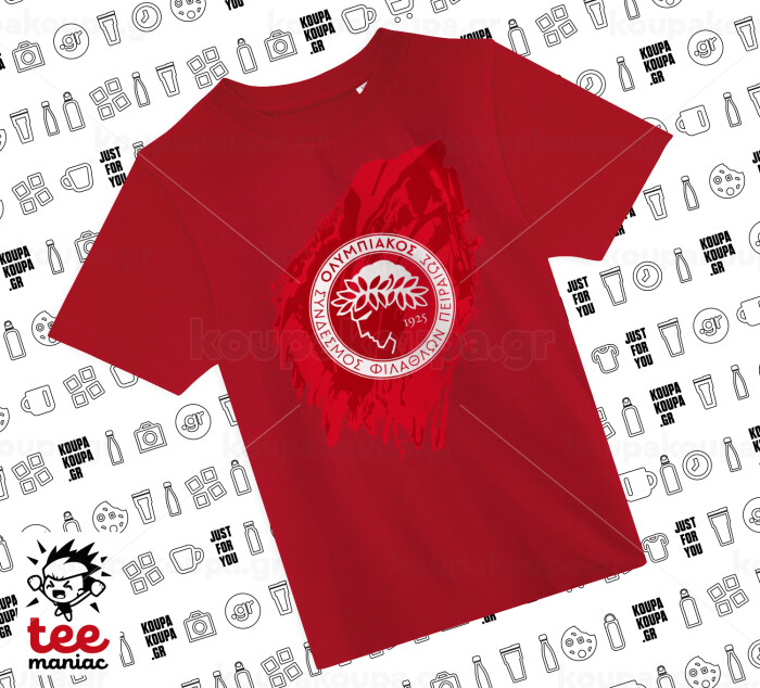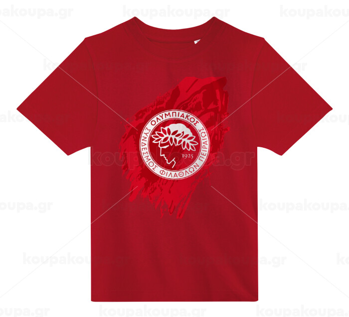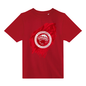 Olympiacos F.C., Άνετο παιδικό T-Shirt ΚΟΚΚΙΝΟ από 100% βαμβάκι, για κάθε μέρα. Vegan & OEKO-TEX πιστοποιημένο.
