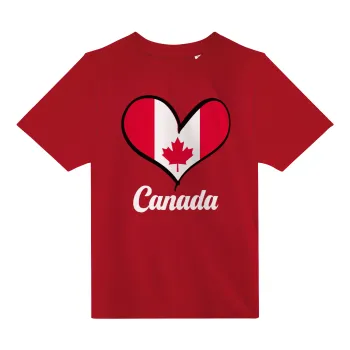 Canada flag, Άνετο παιδικό T-Shirt ΚΟΚΚΙΝΟ από 100% βαμβάκι, για κάθε μέρα. Vegan & OEKO-TEX πιστοποιημένο.
