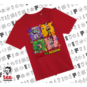 Back to the School Buzz & Friends, Άνετο παιδικό T-Shirt ΚΟΚΚΙΝΟ από 100% βαμβάκι, για κάθε μέρα. Vegan & OEKO-TEX πιστοποιημένο.