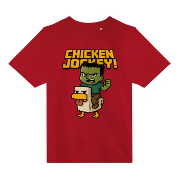 Chicken Jockey, Άνετο παιδικό T-Shirt ΚΟΚΚΙΝΟ από 100% βαμβάκι, για κάθε μέρα. Vegan & OEKO-TEX πιστοποιημένο.