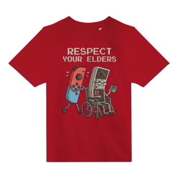 Respect your Elders, Άνετο παιδικό T-Shirt ΚΟΚΚΙΝΟ από 100% βαμβάκι, για κάθε μέρα. Vegan & OEKO-TEX πιστοποιημένο.