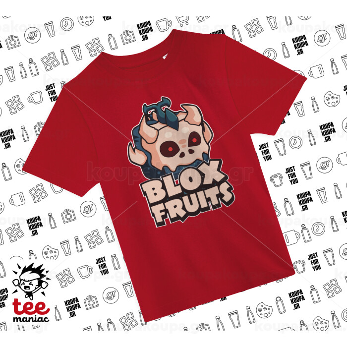 Roblox Blox Fruits, Άνετο παιδικό T-Shirt ΚΟΚΚΙΝΟ από 100% βαμβάκι, για κάθε μέρα. Vegan & OEKO-TEX πιστοποιημένο.