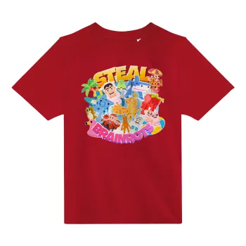 Roblox Steal a Brainrot, Άνετο παιδικό T-Shirt ΚΟΚΚΙΝΟ από 100% βαμβάκι, για κάθε μέρα. Vegan & OEKO-TEX πιστοποιημένο.