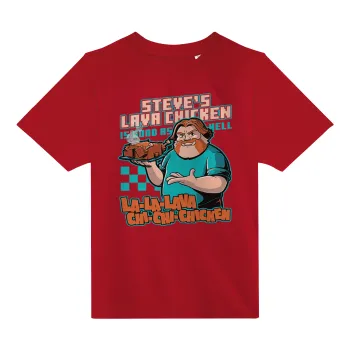 Steves Lava Chicken, Άνετο παιδικό T-Shirt ΚΟΚΚΙΝΟ από 100% βαμβάκι, για κάθε μέρα. Vegan & OEKO-TEX πιστοποιημένο.