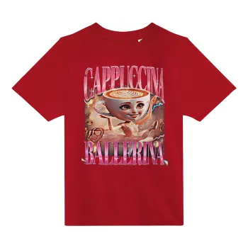 BALLERINA CAPUCHINA FUNK, Άνετο παιδικό T-Shirt ΚΟΚΚΙΝΟ από 100% βαμβάκι, για κάθε μέρα. Vegan & OEKO-TEX πιστοποιημένο.
