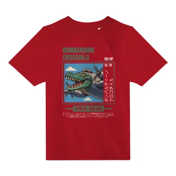 Bombardiro Crocodilo, Άνετο παιδικό T-Shirt ΚΟΚΚΙΝΟ από 100% βαμβάκι, για κάθε μέρα. Vegan & OEKO-TEX πιστοποιημένο.