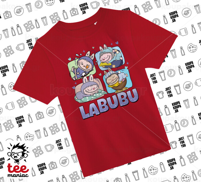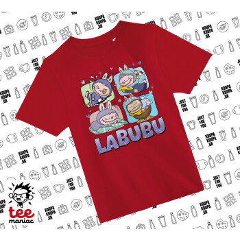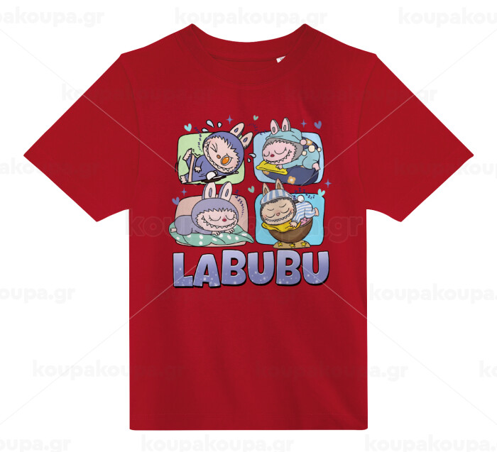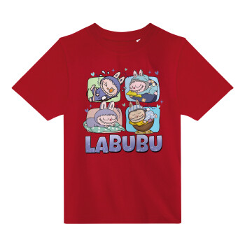 Labubu, Άνετο παιδικό T-Shirt ΚΟΚΚΙΝΟ από 100% βαμβάκι, για κάθε μέρα. Vegan & OEKO-TEX πιστοποιημένο.