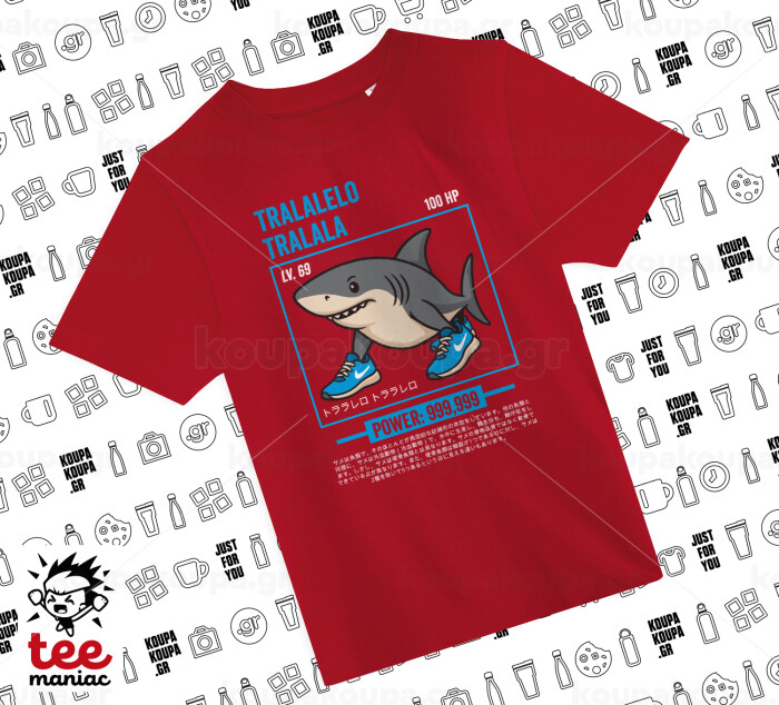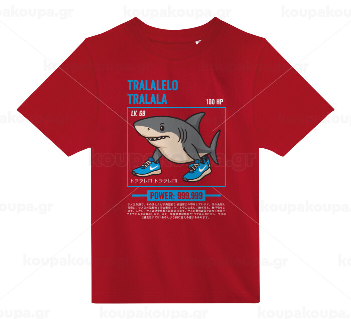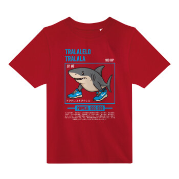 Tralalero Tralala, Άνετο παιδικό T-Shirt ΚΟΚΚΙΝΟ από 100% βαμβάκι, για κάθε μέρα. Vegan & OEKO-TEX πιστοποιημένο.