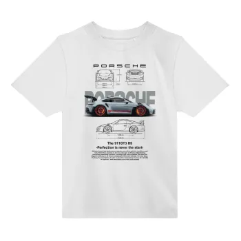 Porsche, Άνετο παιδικό T-Shirt ΛΕΥΚΟ από 100% βαμβάκι, για κάθε μέρα. Vegan & OEKO-TEX πιστοποιημένο.