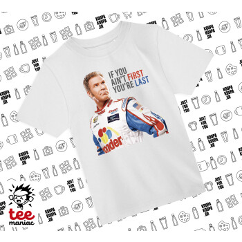 If You Ain't First You're Last Ricky Bobby, Talladega Nights, Άνετο παιδικό T-Shirt ΛΕΥΚΟ από 100% βαμβάκι, για κάθε μέρα. Vegan & OEKO-TEX πιστοποιημένο.