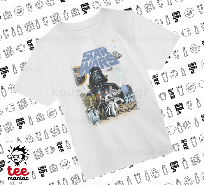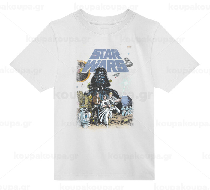 Star Wars, Άνετο παιδικό T-Shirt ΛΕΥΚΟ από 100% βαμβάκι, για κάθε μέρα. Vegan & OEKO-TEX πιστοποιημένο.
