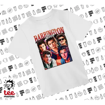 Steve Harrington, Stranger Things, Άνετο παιδικό T-Shirt ΛΕΥΚΟ από 100% βαμβάκι, για κάθε μέρα. Vegan & OEKO-TEX πιστοποιημένο.