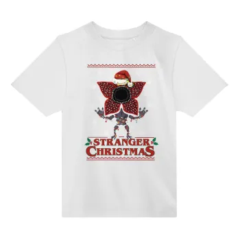 Stranger Things Christmas, Άνετο παιδικό T-Shirt ΛΕΥΚΟ από 100% βαμβάκι, για κάθε μέρα. Vegan & OEKO-TEX πιστοποιημένο.