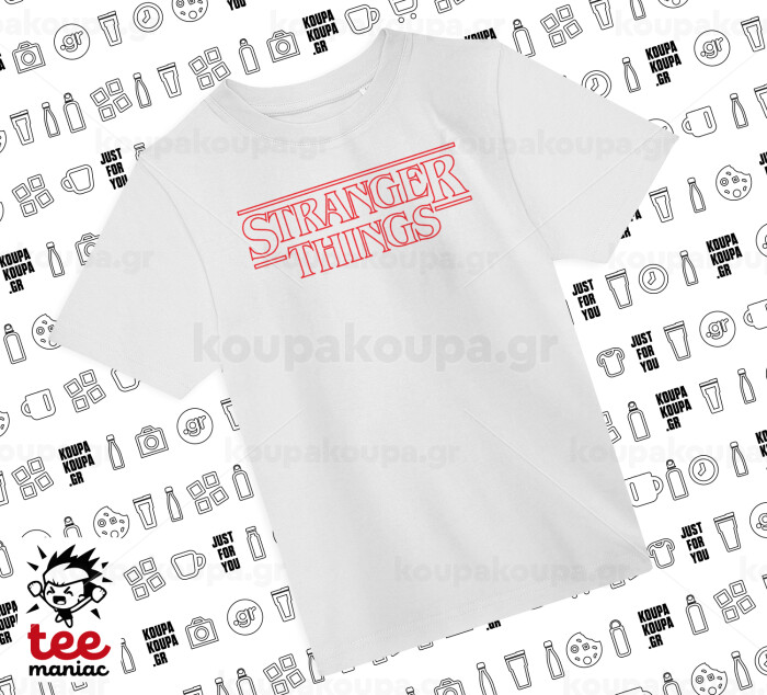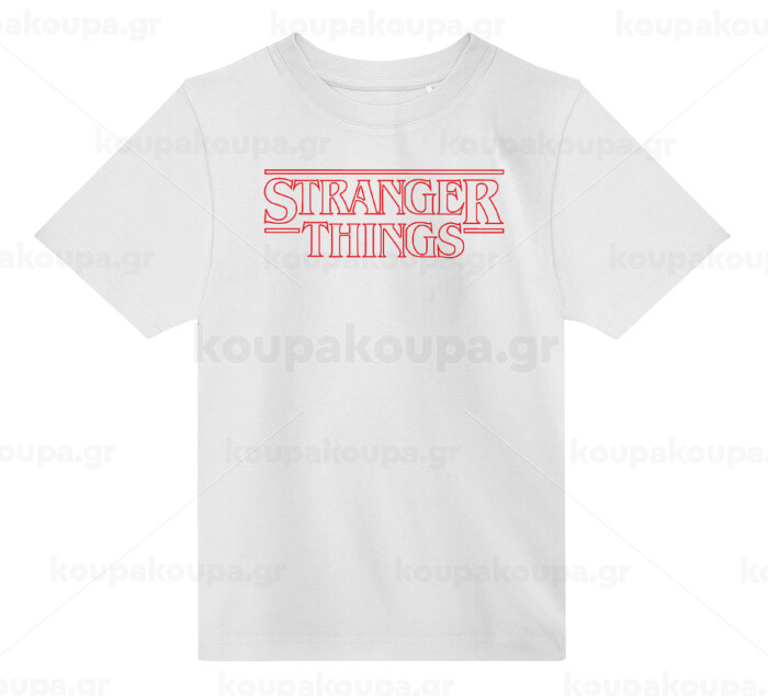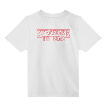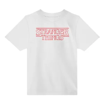 Stranger Things Logo, Άνετο παιδικό T-Shirt ΛΕΥΚΟ από 100% βαμβάκι, για κάθε μέρα. Vegan & OEKO-TEX πιστοποιημένο.