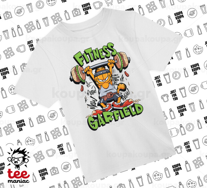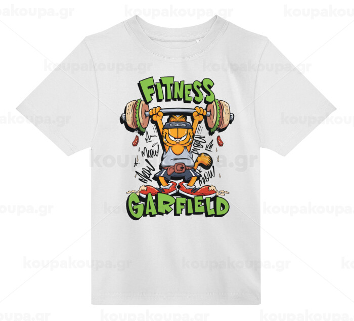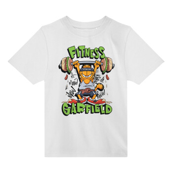 Garfield Fitness, Άνετο παιδικό T-Shirt ΛΕΥΚΟ από 100% βαμβάκι, για κάθε μέρα. Vegan & OEKO-TEX πιστοποιημένο.