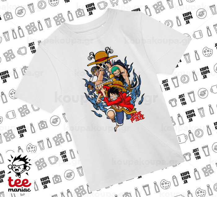 One Piece, Άνετο παιδικό T-Shirt ΛΕΥΚΟ από 100% βαμβάκι, για κάθε μέρα. Vegan & OEKO-TEX πιστοποιημένο.