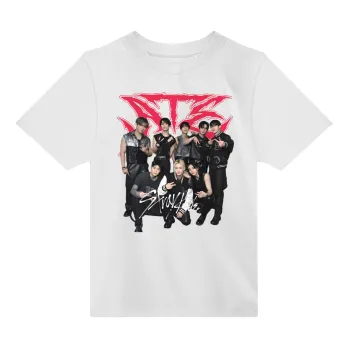 Stray Kids k-pop band, Άνετο παιδικό T-Shirt ΛΕΥΚΟ από 100% βαμβάκι, για κάθε μέρα. Vegan & OEKO-TEX πιστοποιημένο.