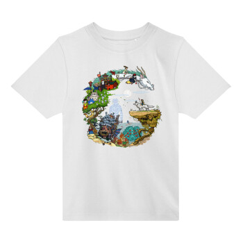 Στούδιο Γκίβλι, Άνετο παιδικό T-Shirt ΛΕΥΚΟ από 100% βαμβάκι, για κάθε μέρα. Vegan & OEKO-TEX πιστοποιημένο.