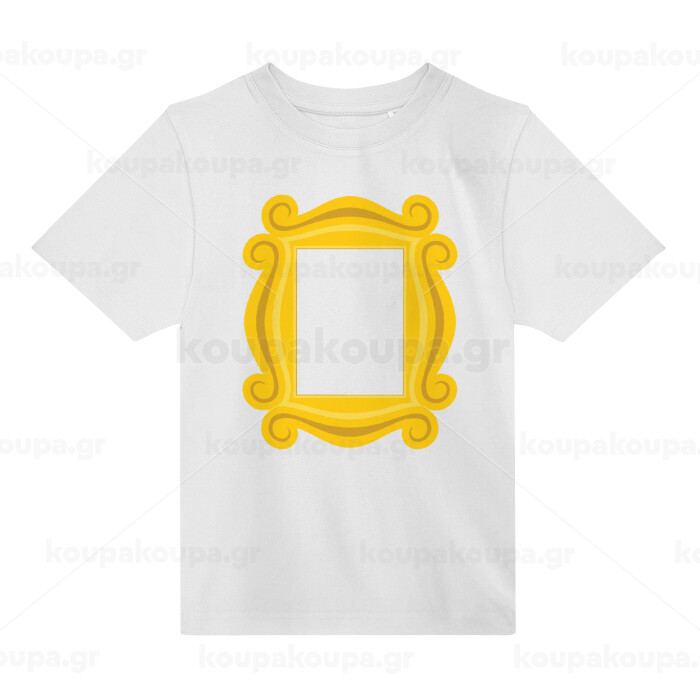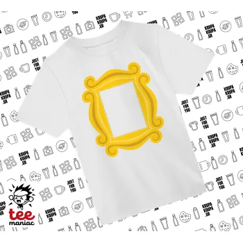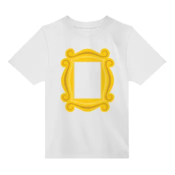 Friends frame, Άνετο παιδικό T-Shirt ΛΕΥΚΟ από 100% βαμβάκι, για κάθε μέρα. Vegan & OEKO-TEX πιστοποιημένο.