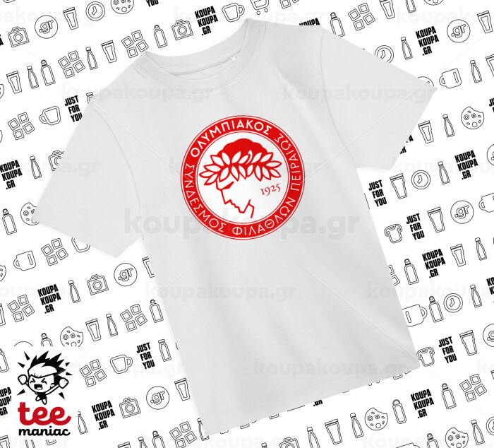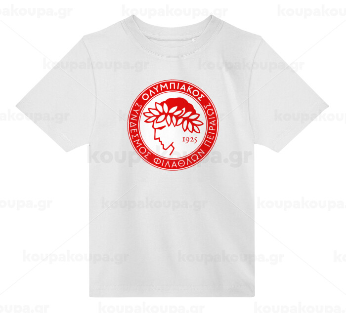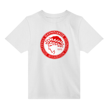 Ολυμπιακός, Άνετο παιδικό T-Shirt ΛΕΥΚΟ από 100% βαμβάκι, για κάθε μέρα. Vegan & OEKO-TEX πιστοποιημένο.