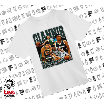 Giannis Antetokounmpo, Άνετο παιδικό T-Shirt ΛΕΥΚΟ από 100% βαμβάκι, για κάθε μέρα. Vegan & OEKO-TEX πιστοποιημένο.