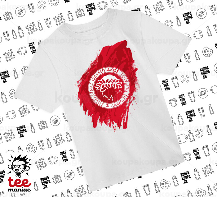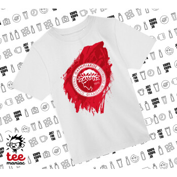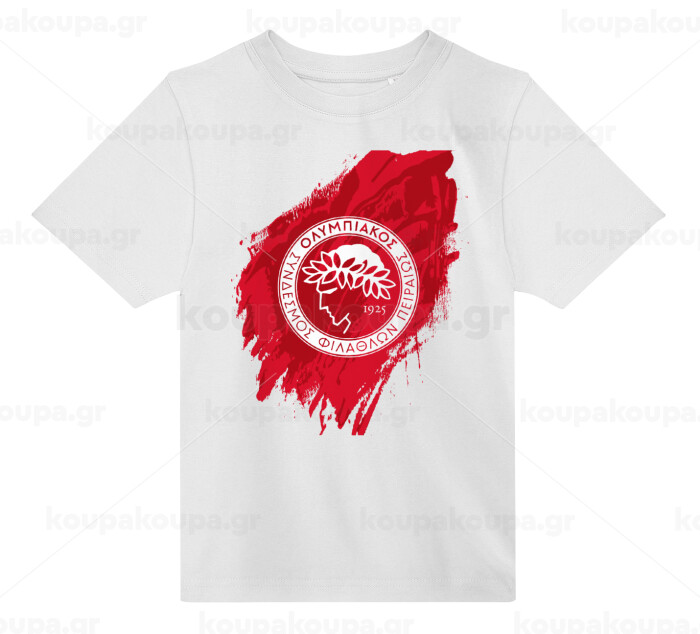 Olympiacos F.C., Άνετο παιδικό T-Shirt ΛΕΥΚΟ από 100% βαμβάκι, για κάθε μέρα. Vegan & OEKO-TEX πιστοποιημένο.