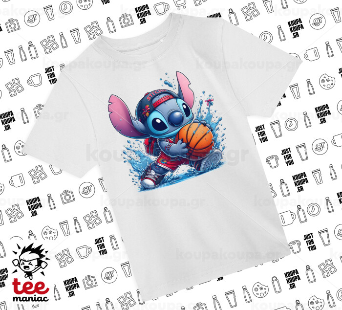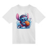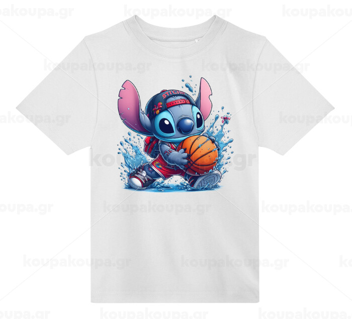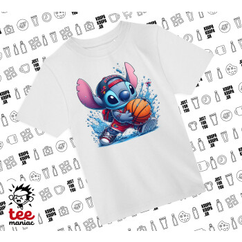 Stitch Basketball, Άνετο παιδικό T-Shirt ΛΕΥΚΟ από 100% βαμβάκι, για κάθε μέρα. Vegan & OEKO-TEX πιστοποιημένο.