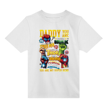 Daddy You Are my Hero, Άνετο παιδικό T-Shirt ΛΕΥΚΟ από 100% βαμβάκι, για κάθε μέρα. Vegan & OEKO-TEX πιστοποιημένο.