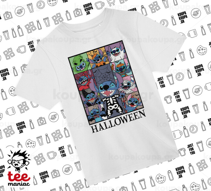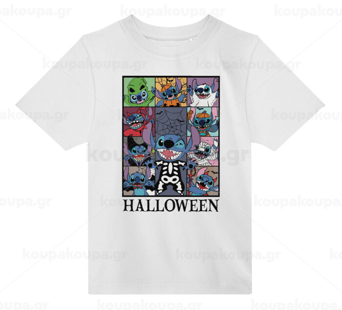 Stitch Halloween, Άνετο παιδικό T-Shirt ΛΕΥΚΟ από 100% βαμβάκι, για κάθε μέρα. Vegan & OEKO-TEX πιστοποιημένο.