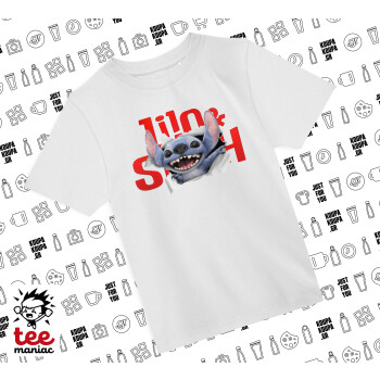Stitch movie, Άνετο παιδικό T-Shirt ΛΕΥΚΟ από 100% βαμβάκι, για κάθε μέρα. Vegan & OEKO-TEX πιστοποιημένο.