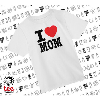 I LOVE MOM, Άνετο παιδικό T-Shirt ΛΕΥΚΟ από 100% βαμβάκι, για κάθε μέρα. Vegan & OEKO-TEX πιστοποιημένο.