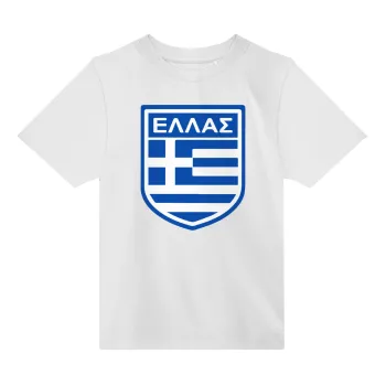 Ελλάς, Άνετο παιδικό T-Shirt ΛΕΥΚΟ από 100% βαμβάκι, για κάθε μέρα. Vegan & OEKO-TEX πιστοποιημένο.
